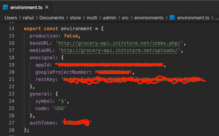 Now we have to change environment files in source code to do that open src/environments folder and edit both file environments.ts and environments.prod.ts file