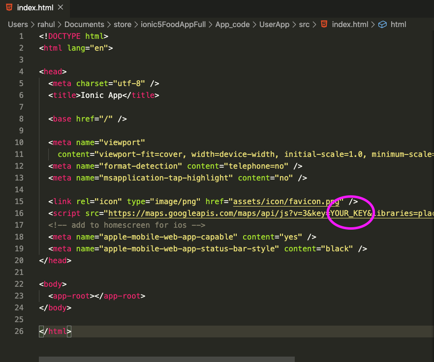 Open index.html inside src/ and add your google maps keys as you can see image bellow