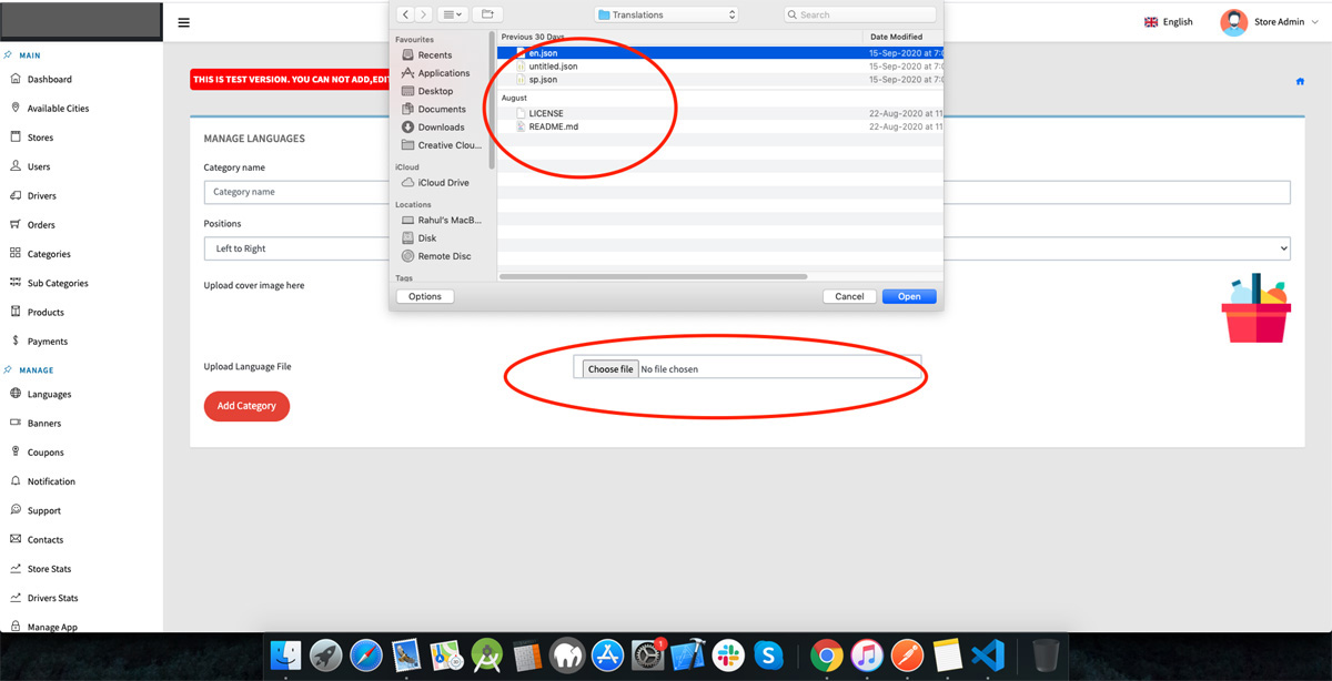In order to upload new language to app, we provided translations file with this. open that folder as shown in image below