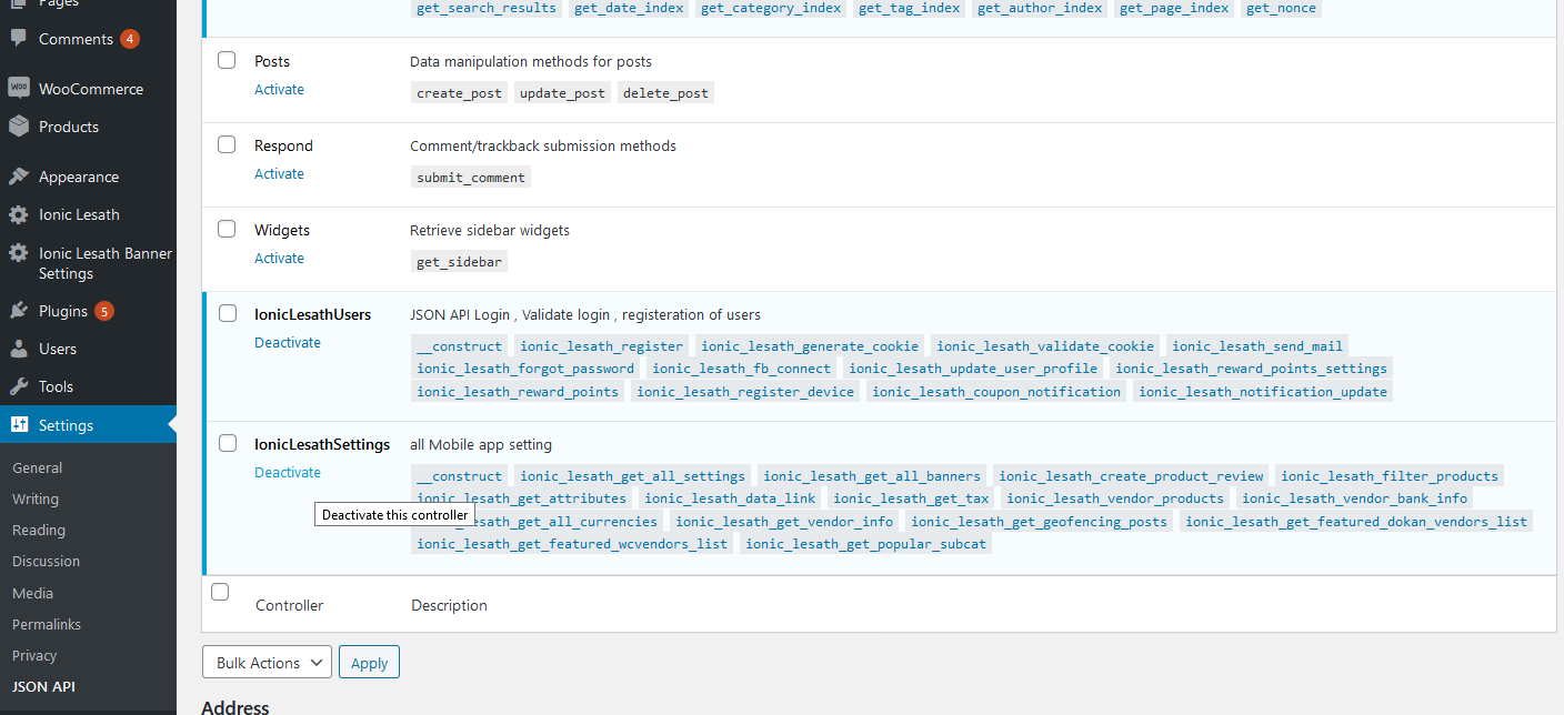 After Intallation of plugin need to activate the controllers from Settings >> Json APi