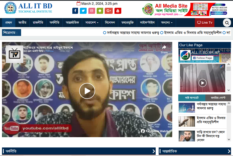 - এই থিমের লাইভ টিভি অপশনে ইউটিউব এর সিঙ্গেল ভিডিও,প্লে-লিস্ট ভিডিও,ইউটিউব লাইভ,ফেসবুক ভিডিও এবং ফেসবুক লাইভ শো করাতে পারবেন।